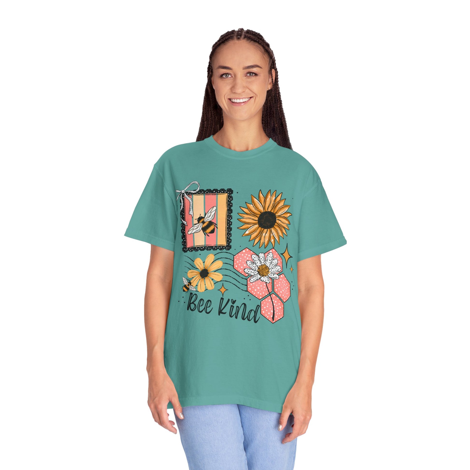 Bee Kind Floral T-Shirt — Sunflower & Honeycomb Graphic Tee