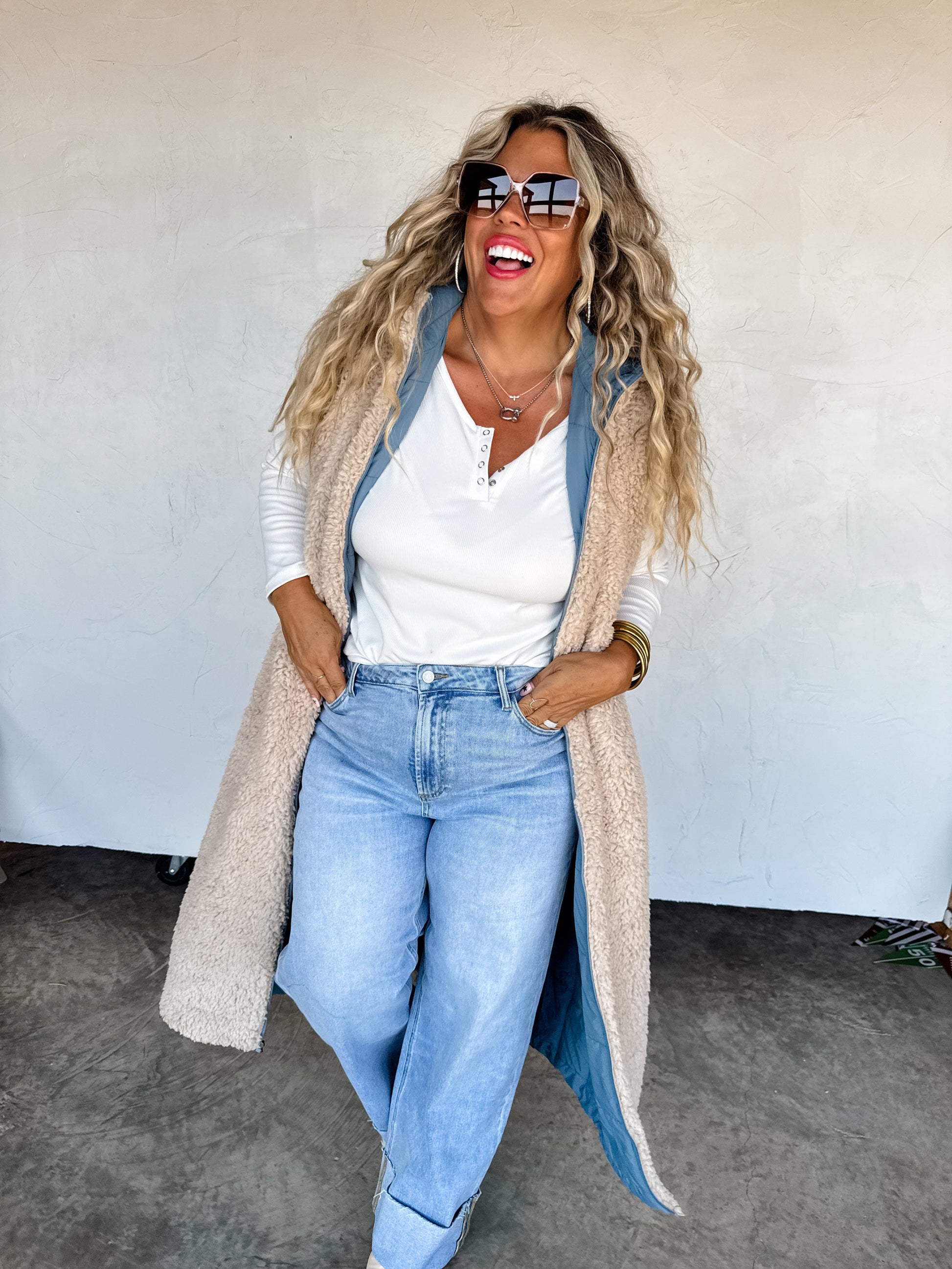 PREORDER- REVERSIBLE SHERPA PUFFER VEST