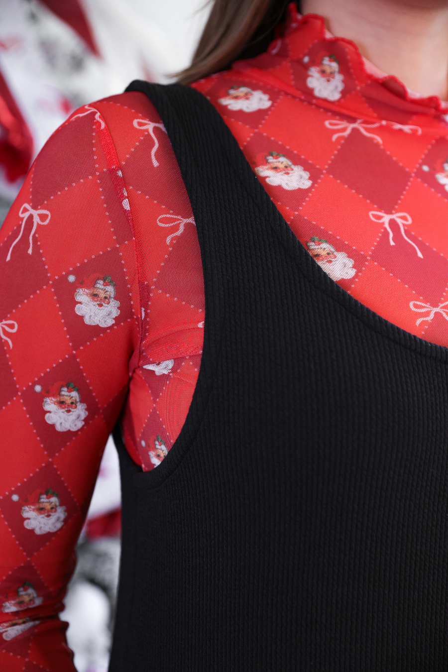 Experience the perfect blend of warmth and elegance with this black ribbed jumper dress. Designed to layer effortlessly over a festive mesh long sleeve or a fitted sweater, it ensures you stay comfortable while making a stylish statement!