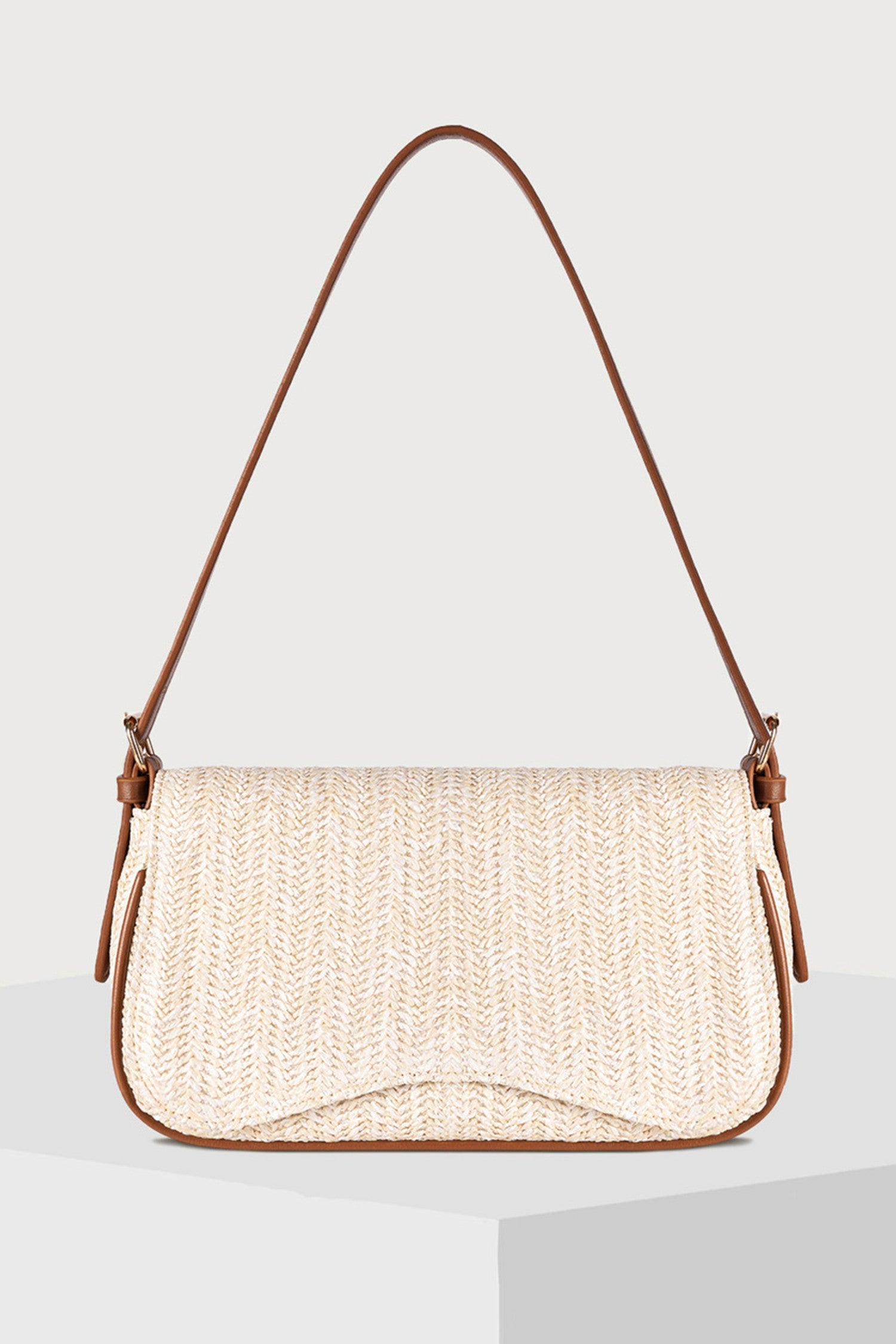 Elevate your everyday style with this sophisticated shoulder bag that seamlessly blends texture and function. The striking combination of supple PU leather and natural raffia weave creates an eye-catching design perfect for any occasion. Stay organized with three convenient pockets—a main zip compartment, interior zip pocket, and slip pocket—keeping essentials within easy reach. The adjustable shoulder strap lets you customize the fit for maximum comfort, whether you're heading to the office or out for the weekend. A versatile accessory that transforms any outfit.